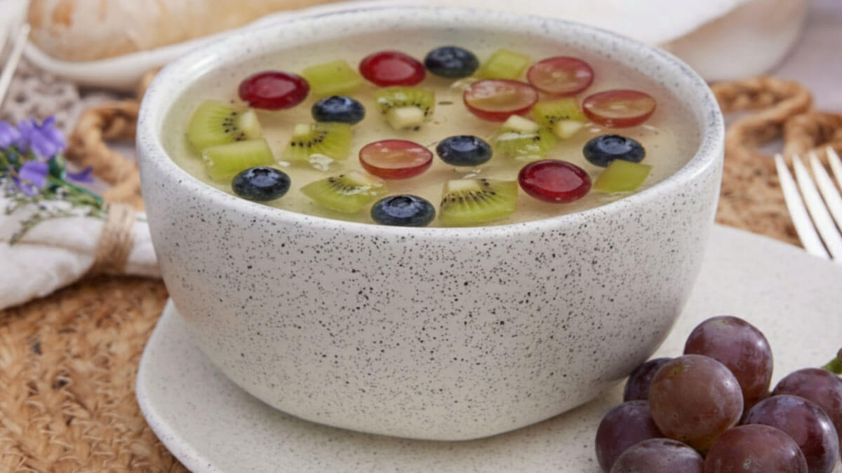 Una receta clásica que aman tanto los niños como los adultos. Frutas en cortes diminutos distribuidas en gelatina clara, logrando un efecto visual delicado y un gusto especial. y un sabor único. Es parte de la cocina molecular porque transforma líquidos en sólidos usando gelificantes, sin alterar su sabor. Ideal como postre fresco y llamativo.