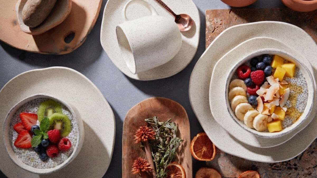 Las vajillas aportan estilo y elegancia, resaltando la textura y colores de cada preparación con semillas.