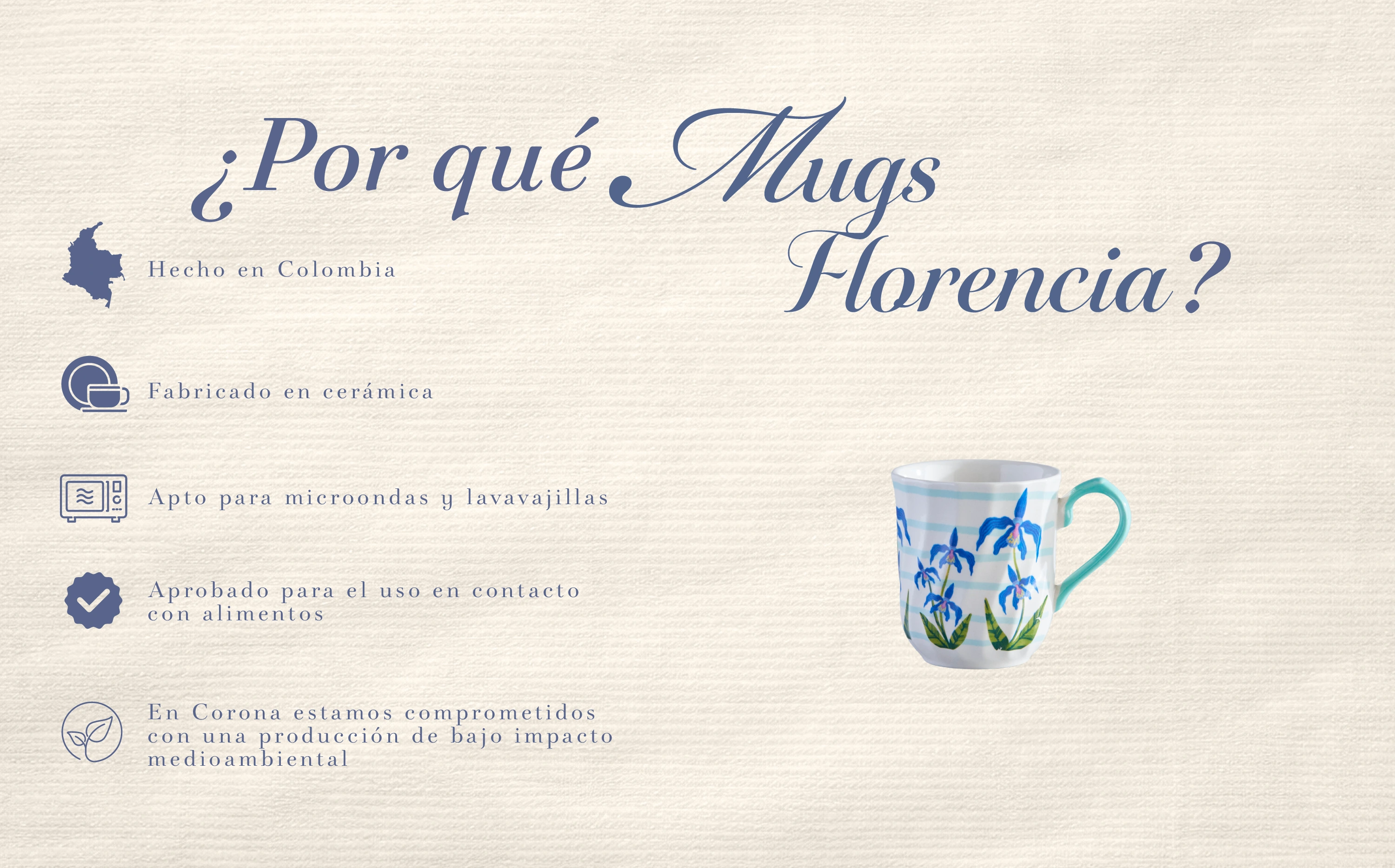 | Incluye | 1 Mug 290.6ml Florencia Orquidea Azul |