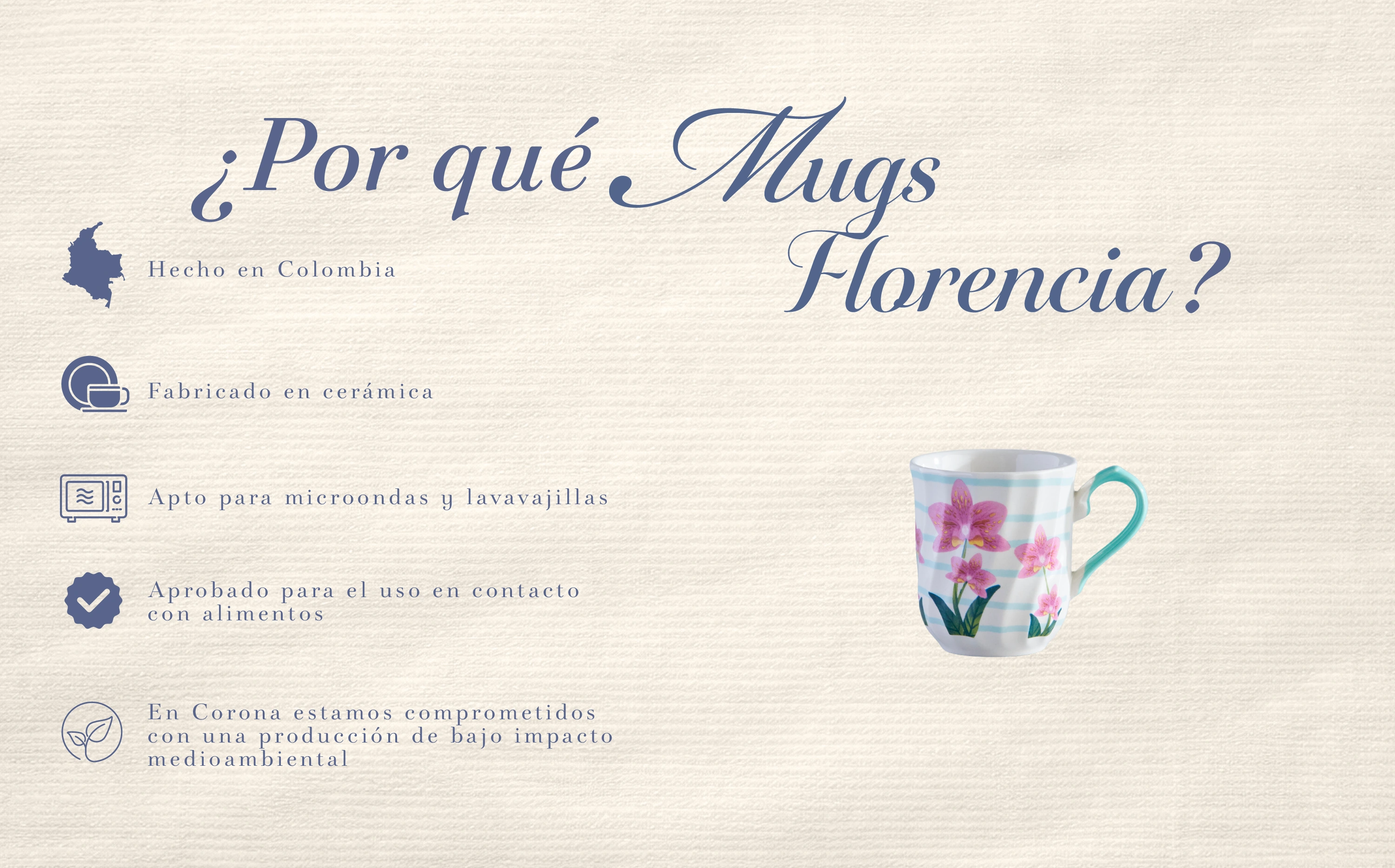 | Incluye | 1 Mug 290.6ml Florencia Orquidea Rosa |