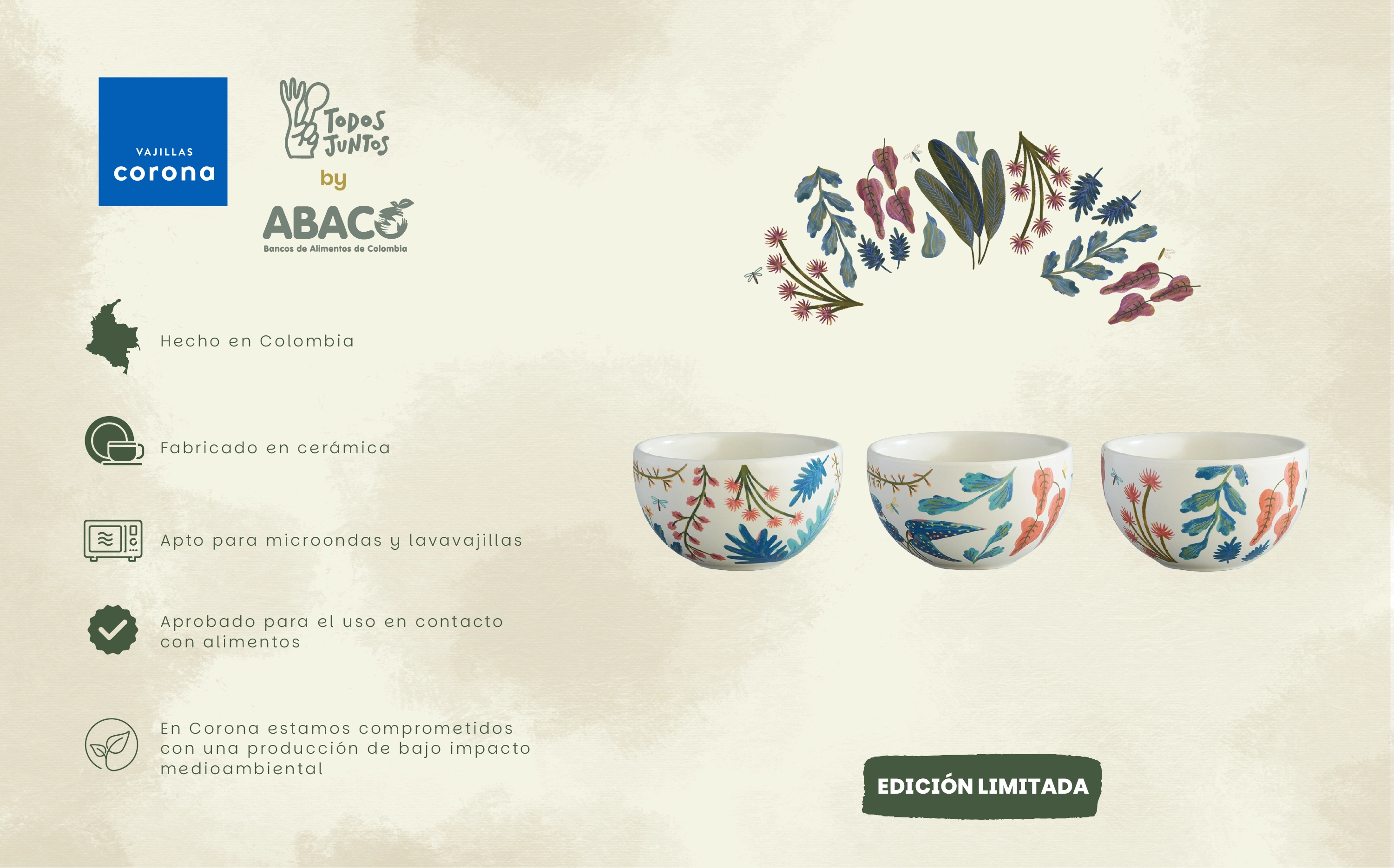 Al elegir esta colección, apoyas directamente a los Bancos de Alimentos de Colombia, contribuyendo a su misión de nutrir y transformar vidas. Porque cuando estamos Todos Juntos, cada mesa puesta se convierte en un acto de amor que alimenta cuerpo y alma.