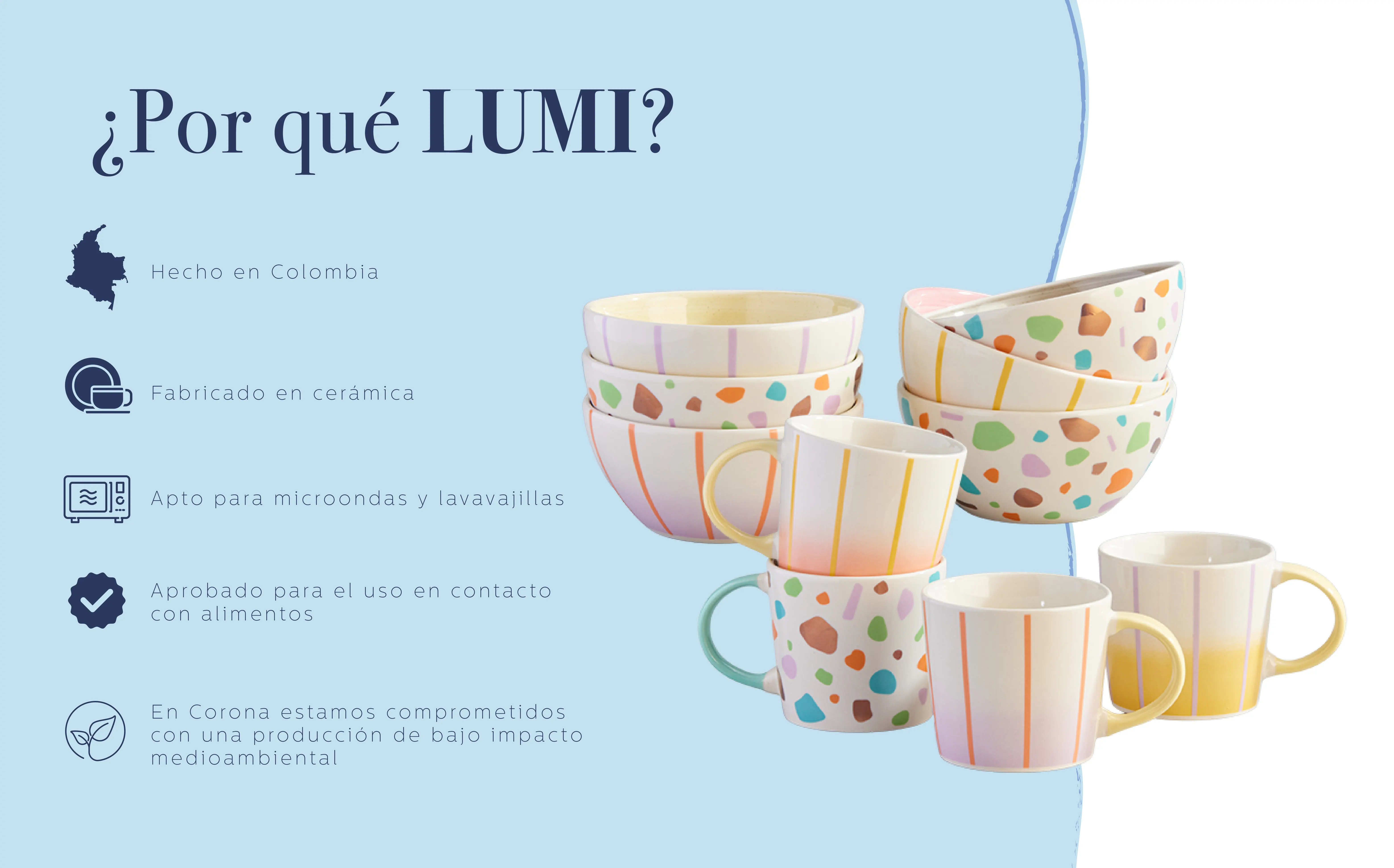 | Garantia | La garantía tiene vigencia de 12 meses por defectos de fábrica. Ningún otro defecto o avería del producto que no esté aquí expresado está cubierto por esta garantía. Se aceptan cambios hasta 30 días después de comprado el producto (solo aplica para www.vajillascorona.com.co). Respaldo de marca. Empresa colombiana con 140 años de experiencia. Como consecuencia del proceso de fabricación nuestros productos de loza pueden presentar marcas de los soportes de quema en la parte inferior de la pieza que no superan 10mm, variaciones leves de color y efectos en la apariencia del esmalte, tales como rizado o puntos. Estas características no se consideran un problema de calidad, ni afecta la salud de las personas, ni el funcionamiento y durabilidad de la pieza. |