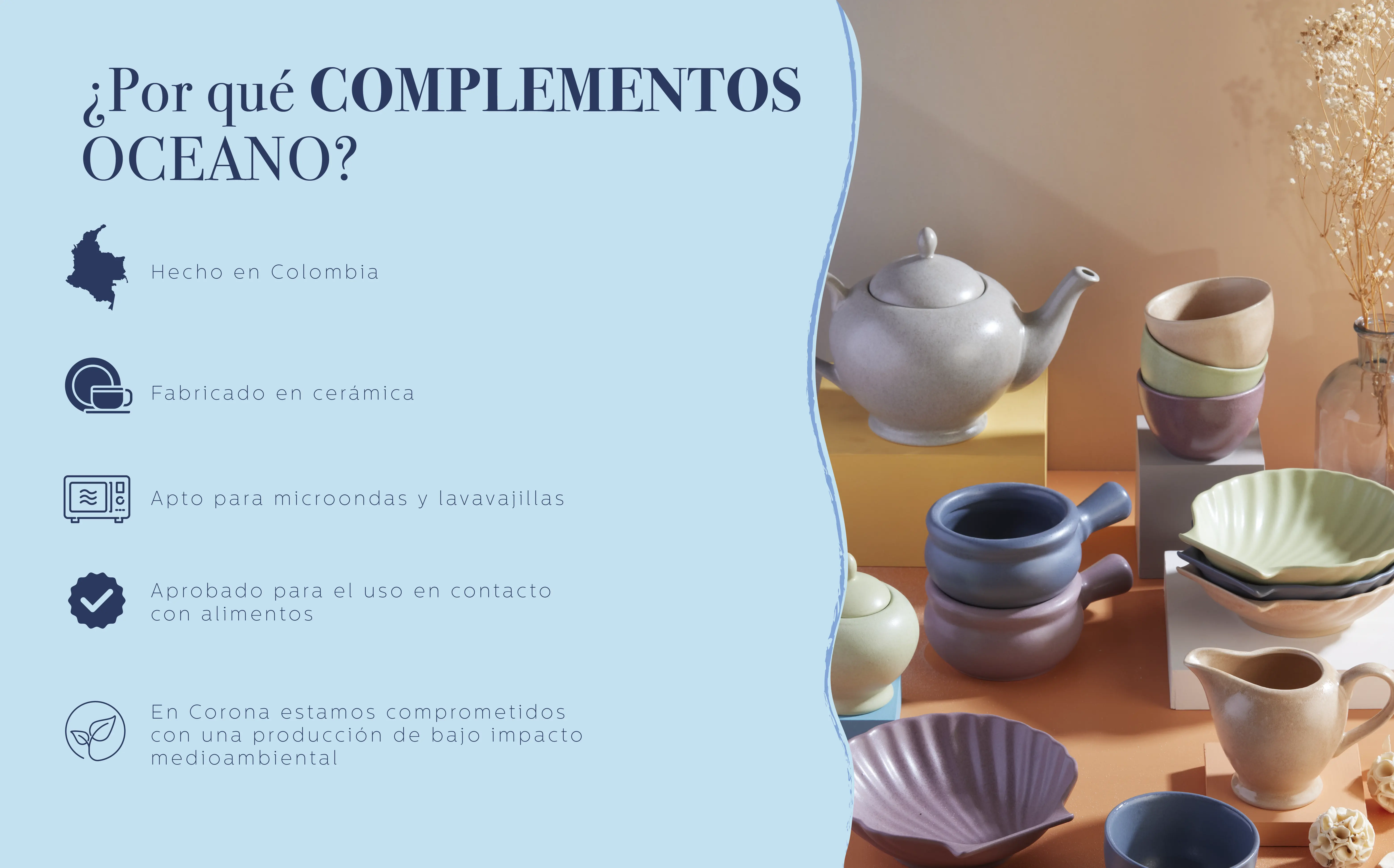 | Garantia | La garantía tiene vigencia de 12 meses por defectos de fábrica. Ningún otro defecto o avería del producto que no esté aquí expresado está cubierto por esta garantía. Se aceptan cambios hasta 30 días después de comprado el producto (solo aplica para www.vajillascorona.com.co). Respaldo de marca. Empresa colombiana con 140 años de experiencia. Como consecuencia del proceso de fabricación nuestros productos de loza pueden presentar marcas de los soportes de quema en la parte inferior de la pieza que no superan 10mm, variaciones leves de color y efectos en la apariencia del esmalte, tales como rizado o puntos. Estas características no se consideran un problema de calidad, ni afecta la salud de las personas, ni el funcionamiento y durabilidad de la pieza. |