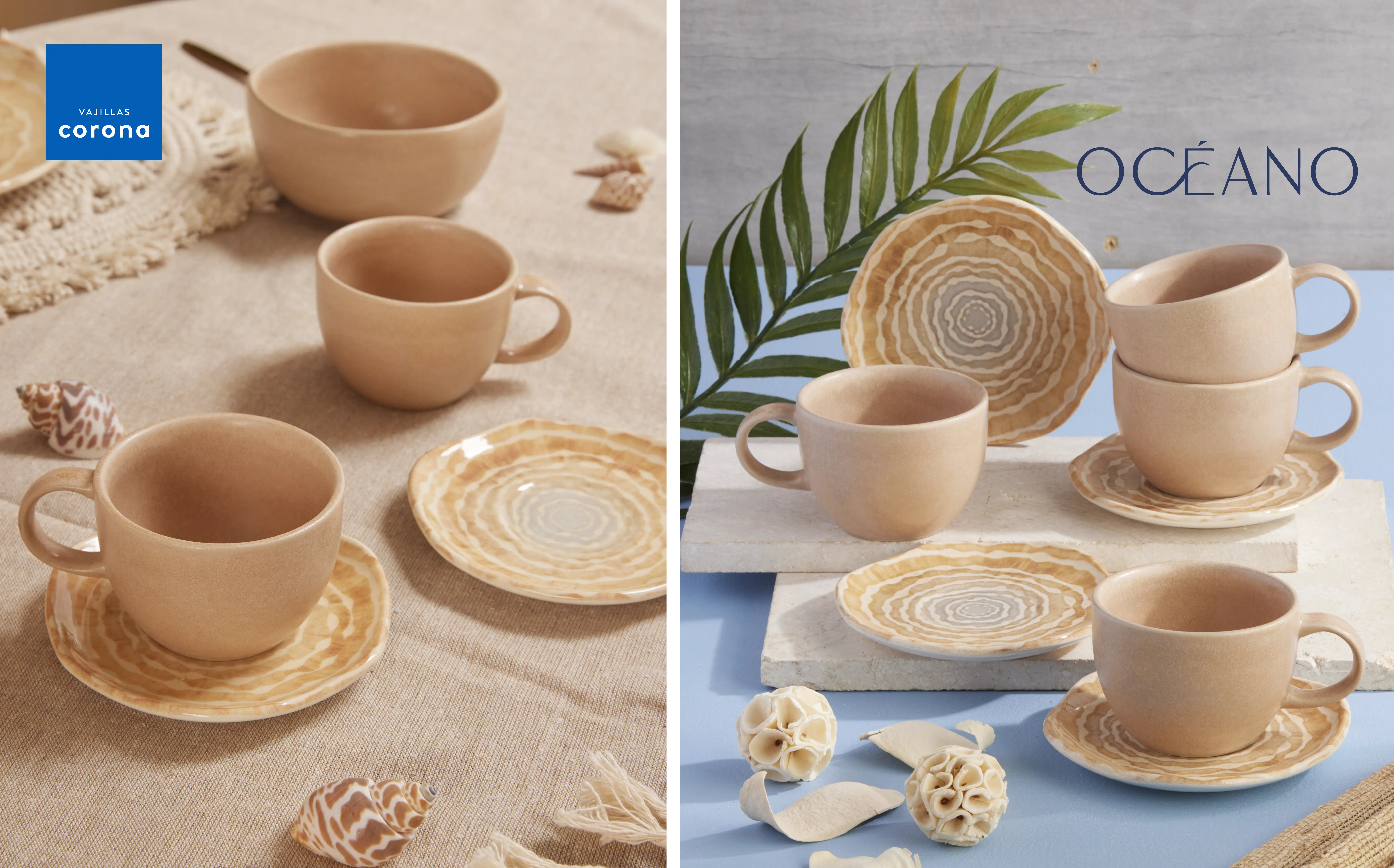 Combo Vajilla Corona Kai 4 puestos 16 piezas + Mantel Sostenible Camel