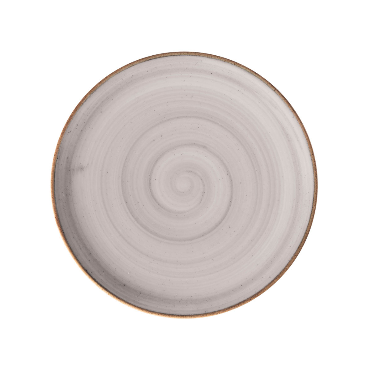 Ideal para platos principales, el Plato Pando Caoba en color gris brinda sobriedad y estilo. Su borde marrón resalta el diseño inspirado en lo rústico, creando una presentación visualmente armónica y actual.